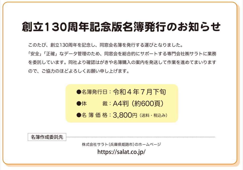 仙台一中・一高創立130周年記念版名簿発行のお知らせ
