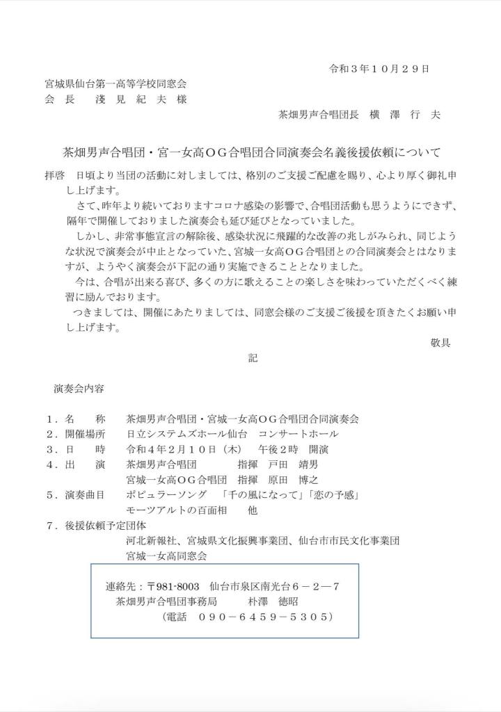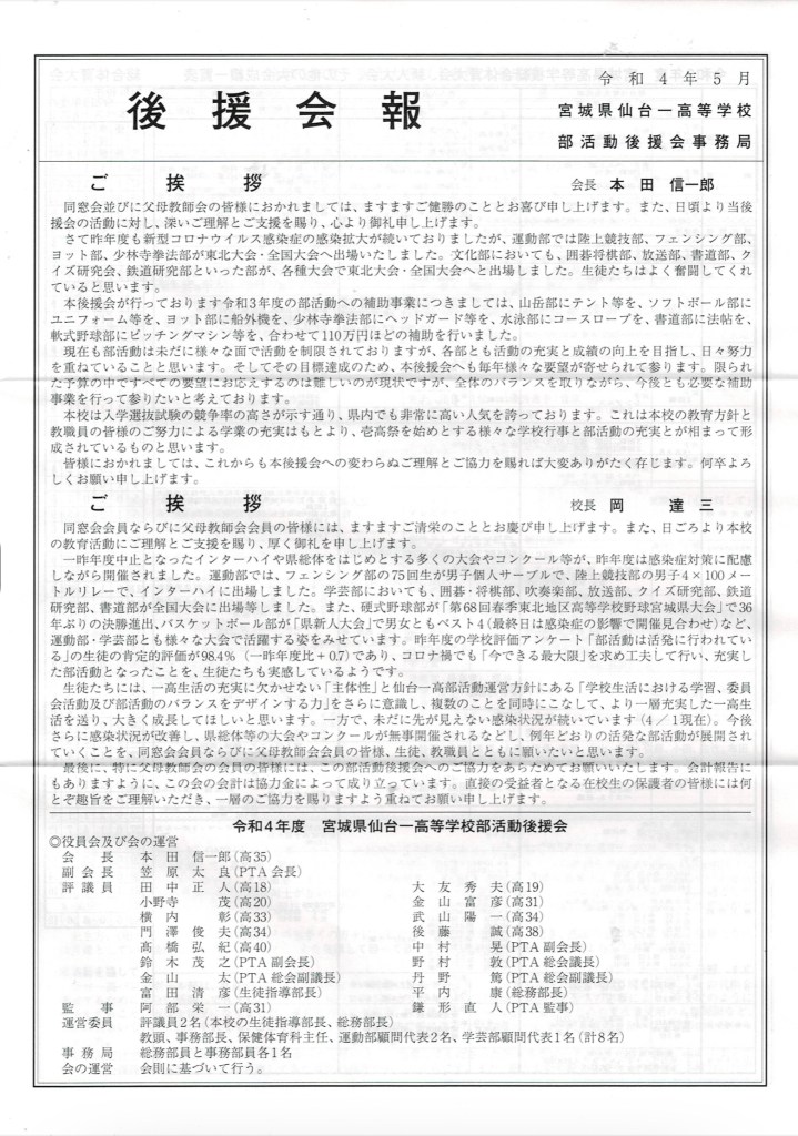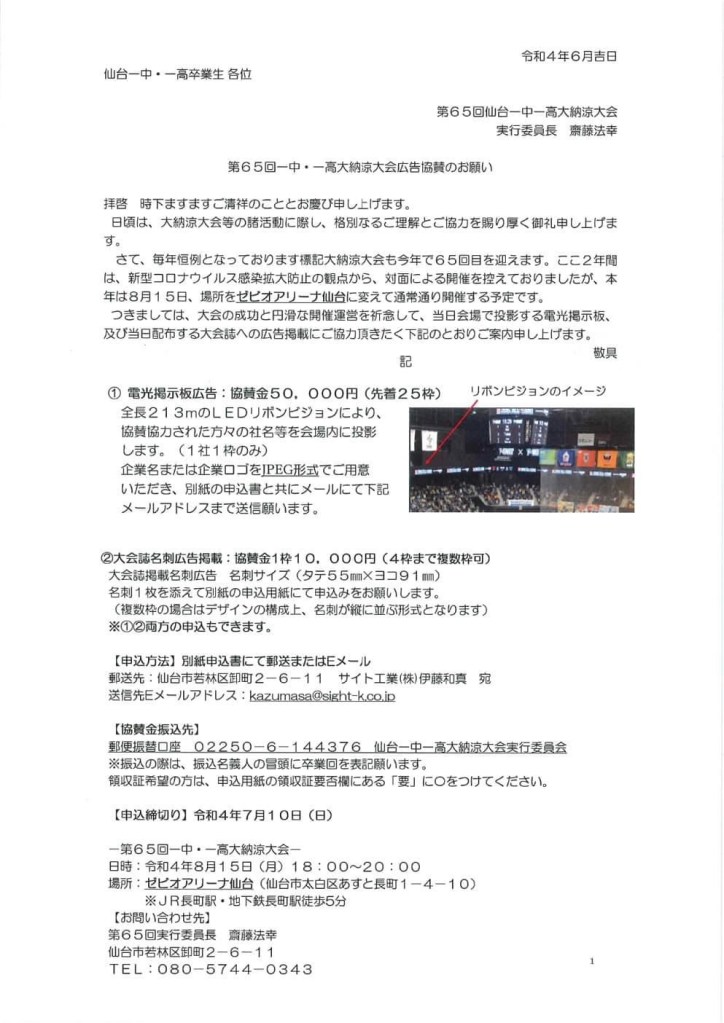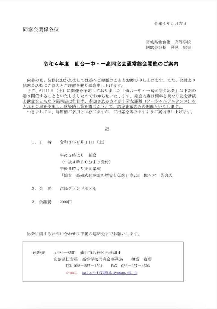 令和4年3月18日 第65回仙台一中・一高大納涼大会の実施計画
