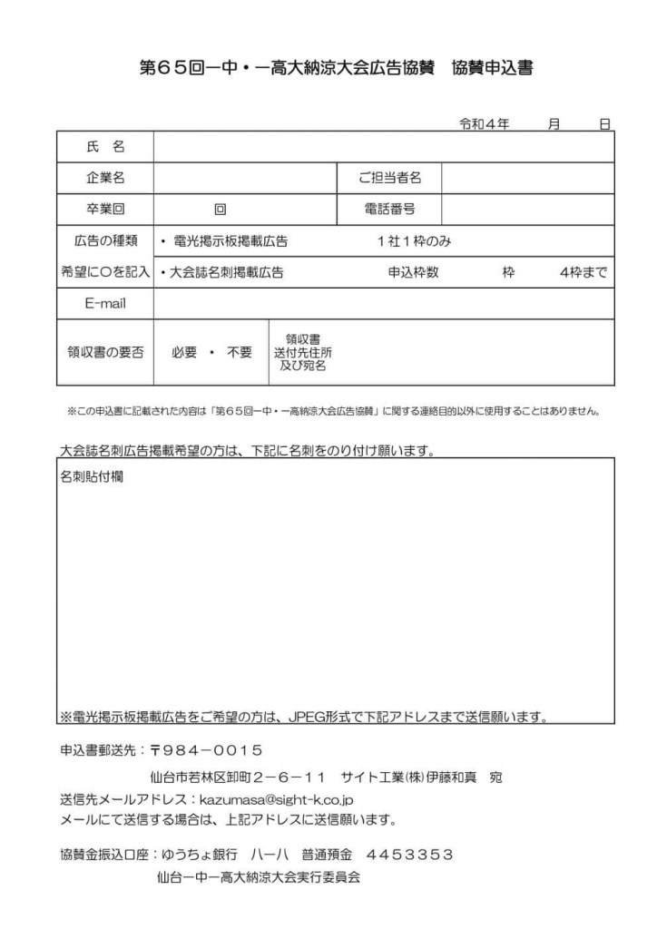 第67回仙台一中・一高大納涼大会、申込受付開始いたします!!