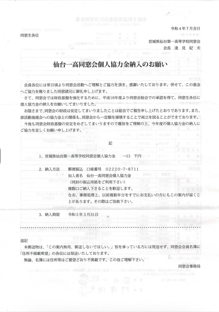 口座名 センダイイッチュウイチコウダイノウリョウタイカイジッコウイインカイ