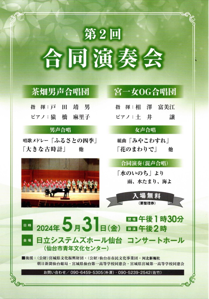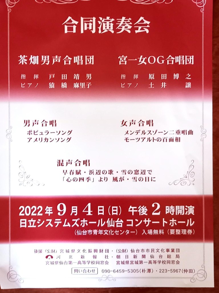 茶畑男声合唱団・宮一女高OG合唱団合同演奏会