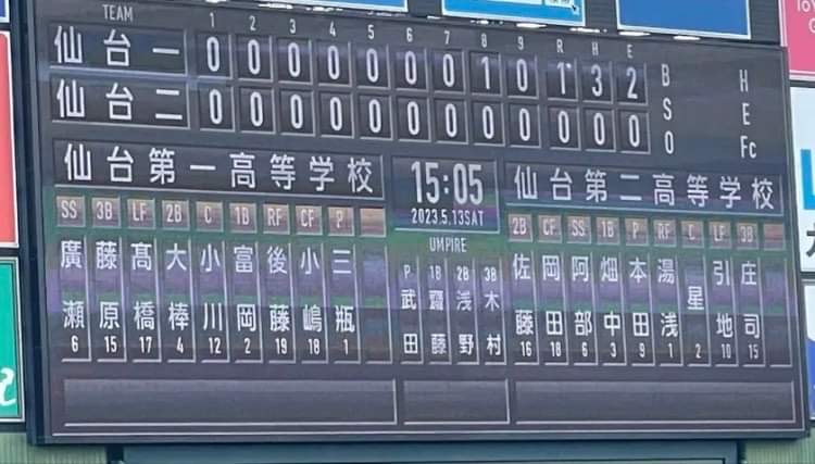 第76回仙台一高・仙台二高硬式野球定期戦の結果