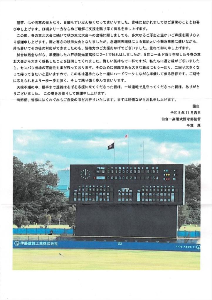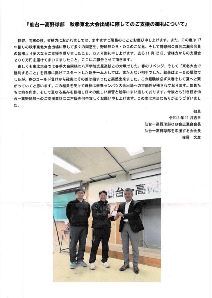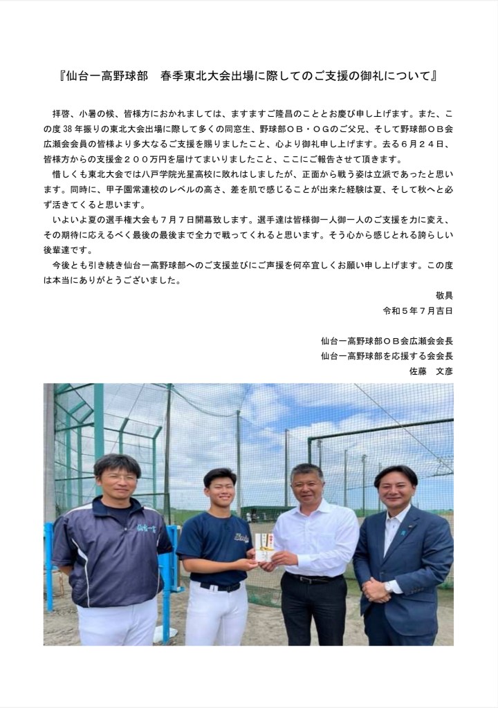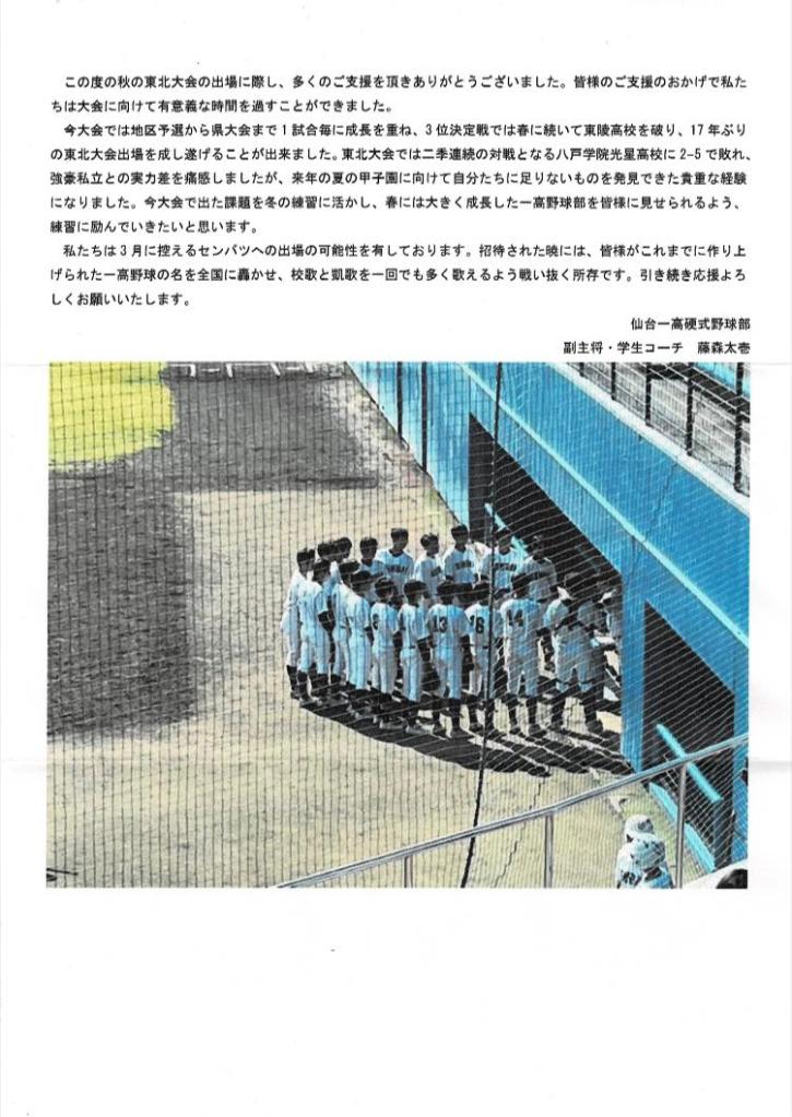 「定期戦」仙台一中一高公式野球部広瀬会Facebookページより