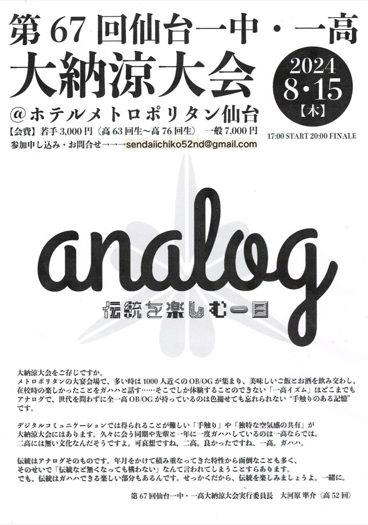 主催:第67回仙台一中・一高大納涼大会 実行委員会(高52回)