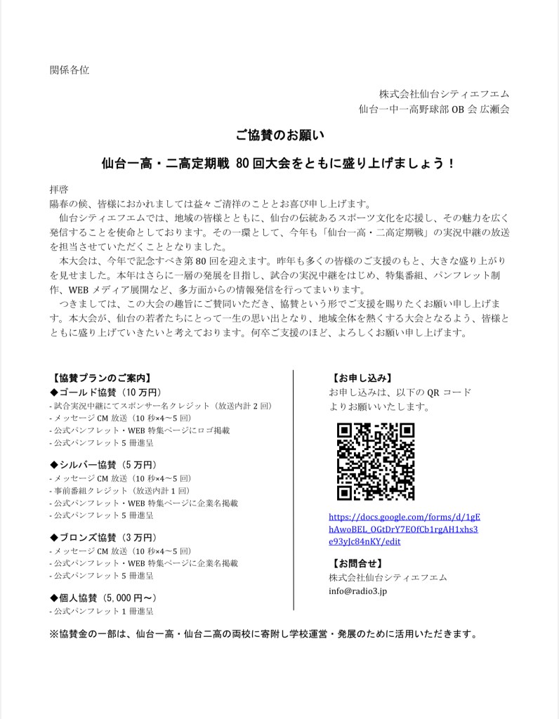 第64回仙台一中・一高大納涼大会 オンライン動画配信のお知らせ